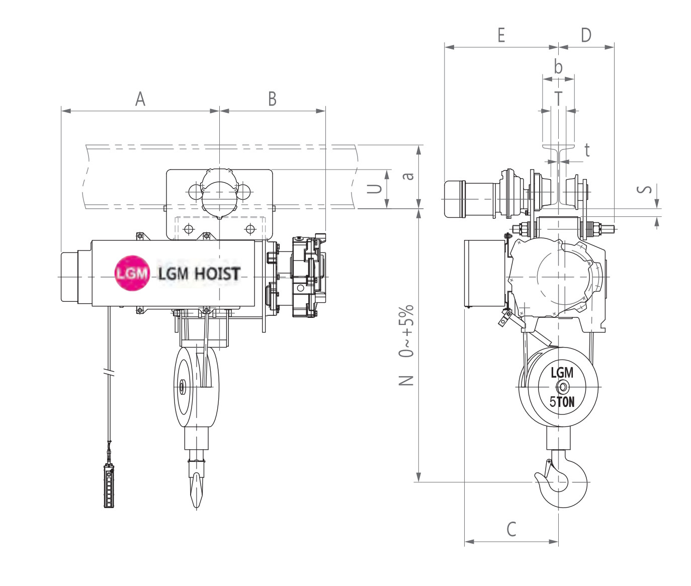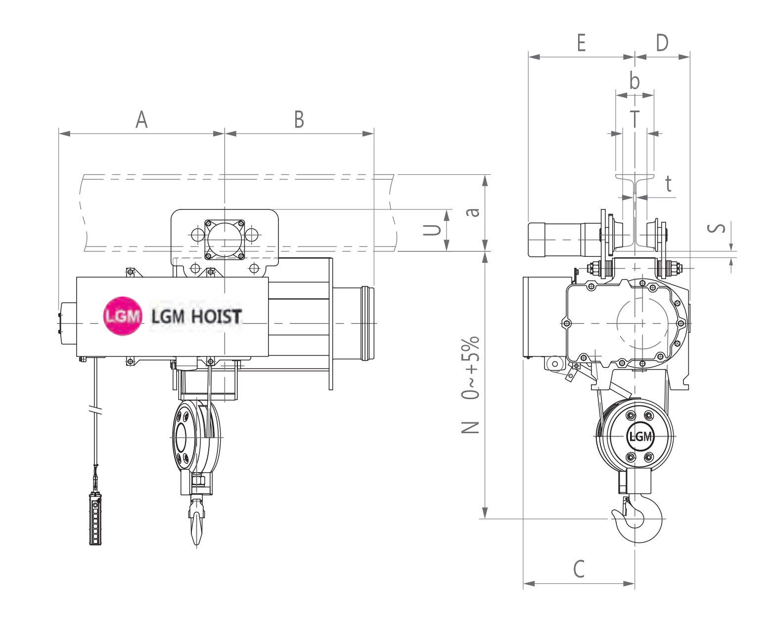 Pa lăng cáp điện LGM Dầm đơn (S-Type) 500kg - 5 tấn