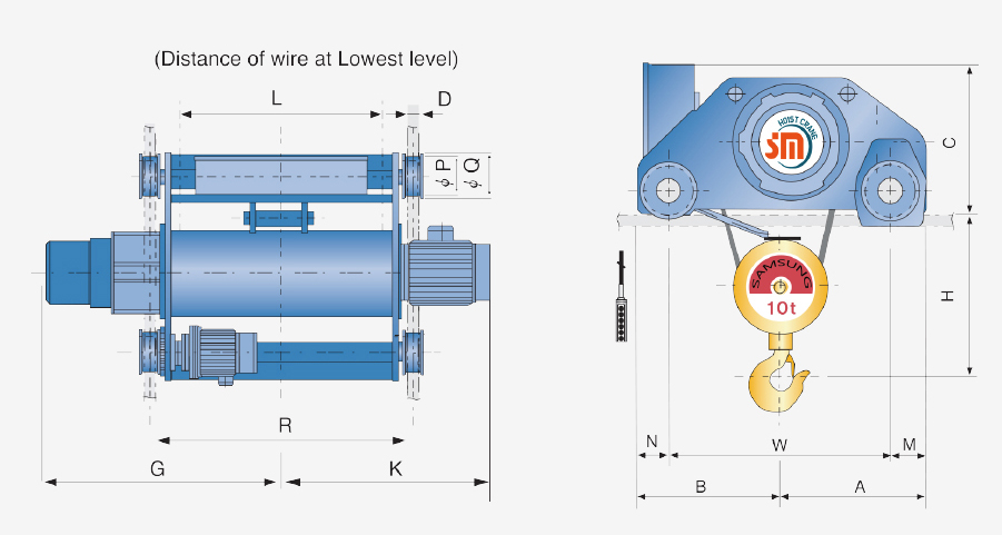 Pa lăng cáp điện Samsung dầm đôi 5 tấn SD0050 / 5 ton Samsung Double Rail Wire Rope Hoist Manual Instruction