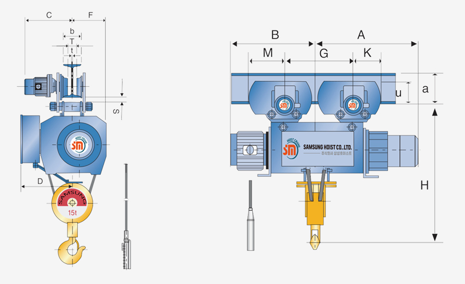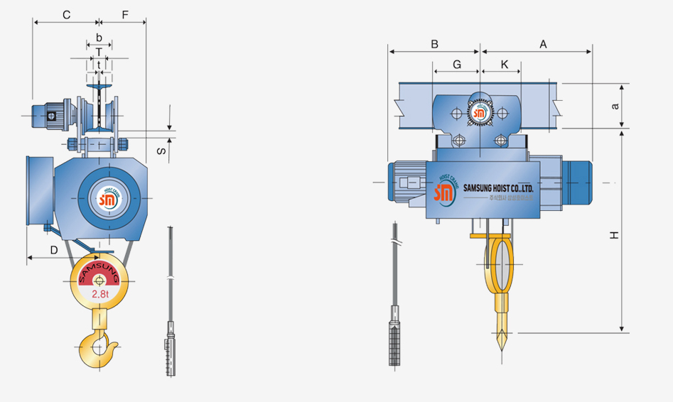 Pa lăng cáp điện Samsung Dầm đơn 500kg - 20 tấn